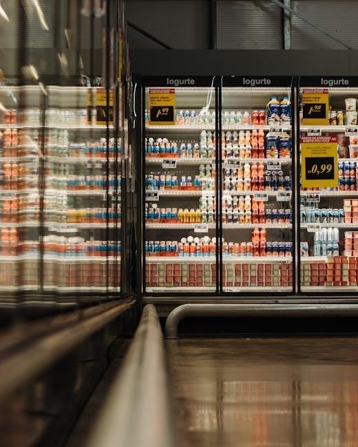 Interior Cleaning: Clean the interior with a mild detergent solution and warm water. Avoid abrasive cleaners‚ as they can damage surfaces. Rinse thoroughly and dry completely before restocking. Regularly check and clean door seals to maintain a tight seal.